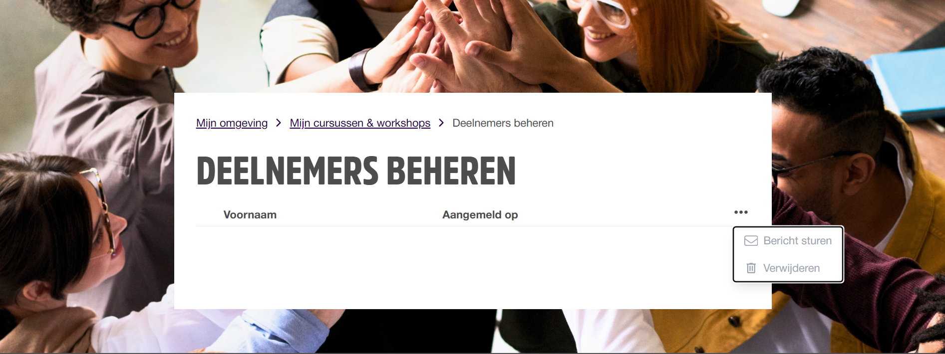 De deelnemers van elk leeraanbod kun je makkelijk beheren. Stuur bijvoorbeeld iedereen een bericht, of verwijder afmelders.